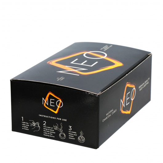 NEO è stato sviluppato tenendo conto dei desideri e delle esigenze degli utilizzatori di shisha. La preferenza per i cubetti di carbone al posto dei carboncini rotondi sta emergendo. Volevamo sviluppare un prodotto che fosse rapido e facile da usare. Il nostro chimico interno ha creato infinite ricette di carbone per creare un'esperienza di fumo simile a quella dei carboncini di cocco, ma più rapida e semplice.